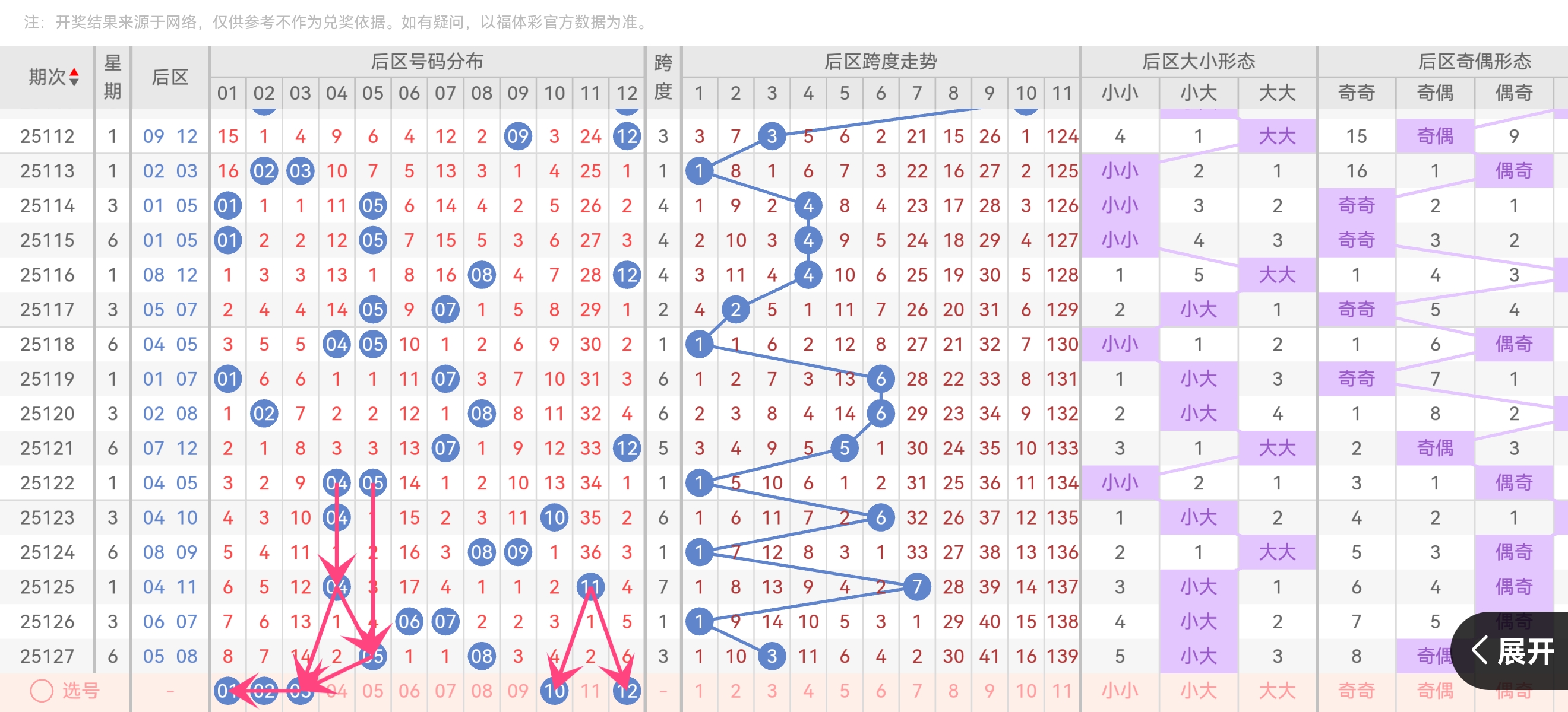 后区质数反弹 :若坚持质合均衡,备选组合 05+10 (跨度5+奇偶配)。