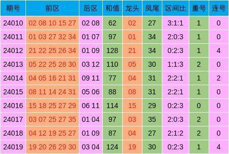 近10期综合特征图(大乐透第24020期三分区解析)