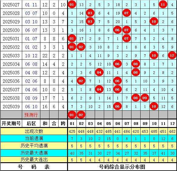 金大玄第2025040期大乐透后区遗漏分析(定义,遗漏0-3期号码为热码,遗漏4-9期奖号为温码,遗漏10期及以上为冷码):