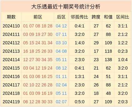 第2024120期大乐透最近10期奖号统计