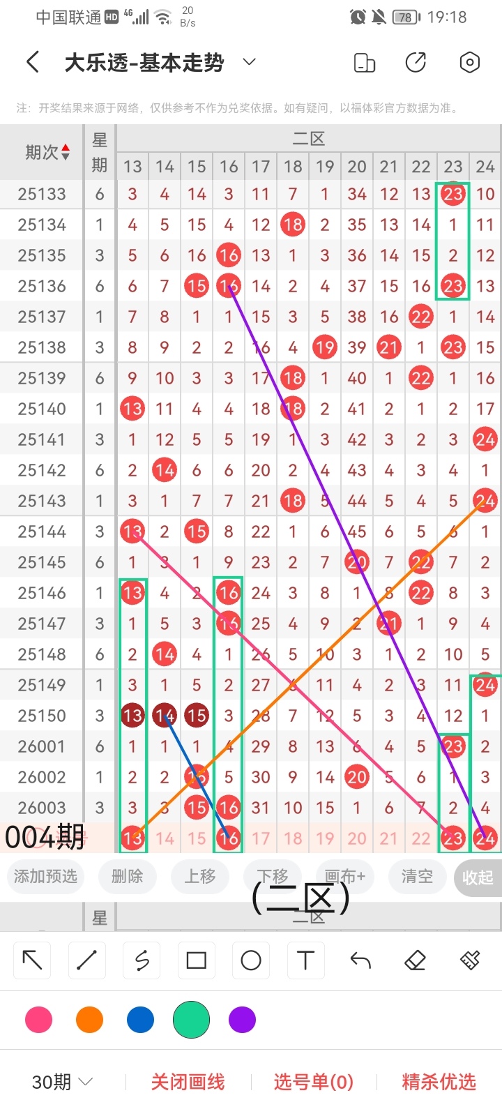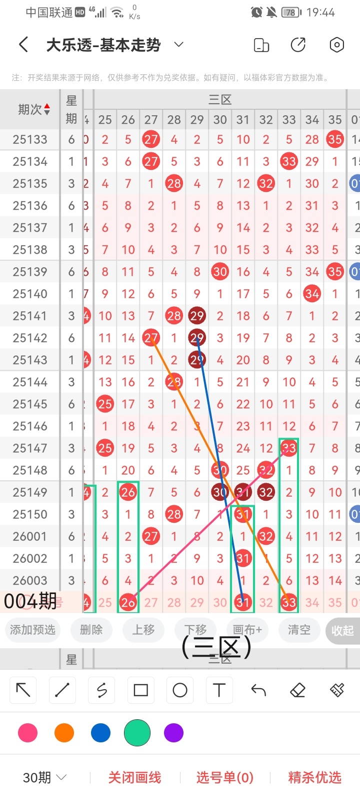 通过以上对上期的简单回顾,下面进入大乐透第2026004期(下面简称本期)的选号分析: