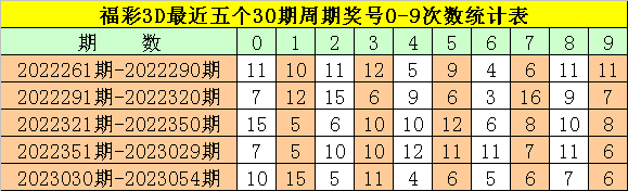 类型分析:福彩3D在上一个30期周期内(第2022351期-第2023029期),组三(含豹子)组合出现了7次,占开奖总数的23%,组六号码出现23期,出现比例为77%,其中组六号码开出比例明显较高。