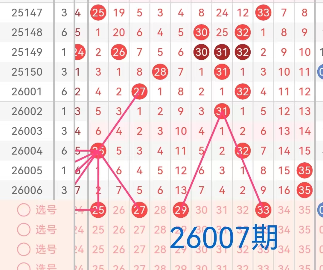 2. 凤尾号码分析:凤尾号码(前区最大号码)上期是35。这是一个最大的凤尾,过去十期内,凤尾号码多集中在18到35之间,其中3字头号码表现较为活跃。因此,本期应重点关注18-35区间的数字,特别是号码25、27、29、33