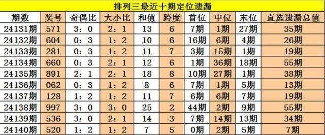 开奖回顾:排列三第2024140期奖号:520,定位直选遗漏值0期、2期、5期,遗漏总值为7期。