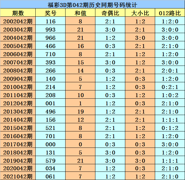 上期回顾:福利彩票3D第2022042期开奖结果702。奖号:奇偶偶、大小小,和值9,跨度7。