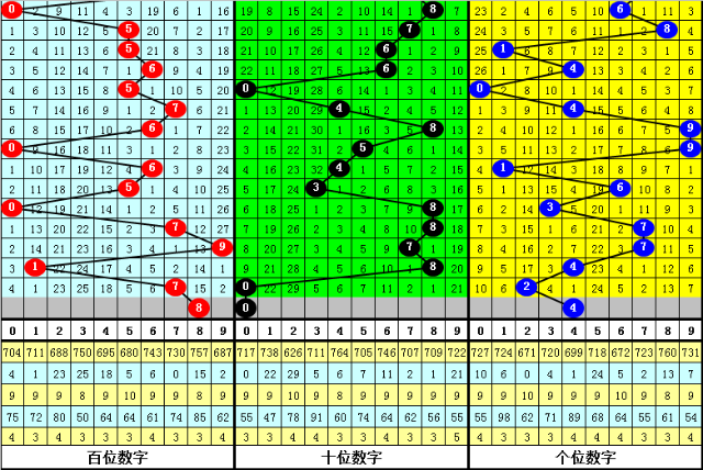 百位:上期奖号为:7,该位大号近期表现活跃,上期上升了6个点位,本期预计该位上升,参考号码8。