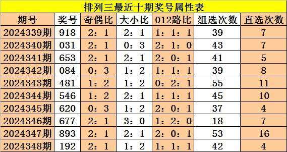 上期回顾:体彩排列三第2024348期奖号:192,奇偶比2:1,大小比1:2,012比1:1:1。