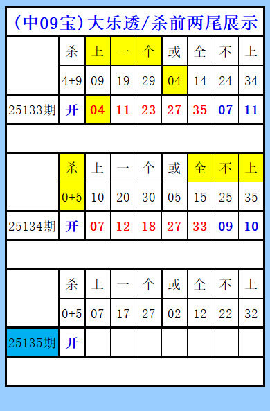 大乐透第135期图文(中09宝),杀前两尾2+7