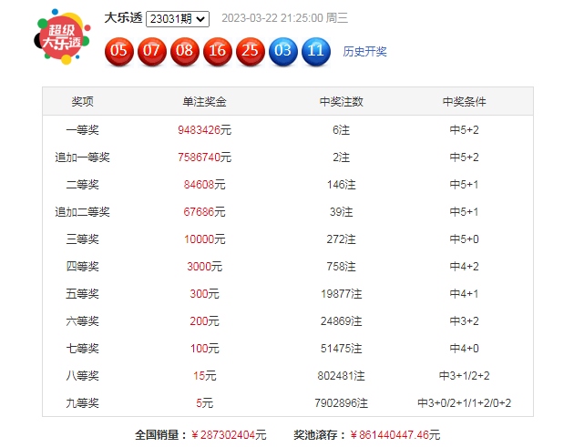 大乐透第23031期开奖。当期开奖号码为:前区05 07 08 16 28,后区03 11。当期前区号码大小比为1:4,奇偶比为3:2,三区比3:1:1,前区开出1组连号07 08;后区开出小大组合03 11。