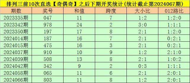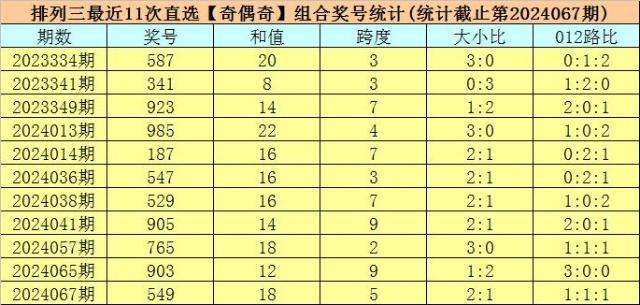 开奖回顾:排列三第2024067期开出奖号:549,类型为组六,和值为18,奇偶比为2:1,大小比为2:1,跨度为5。