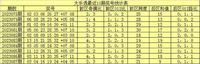 杨剑大乐透第2023088期连续10期奖号综合分析: