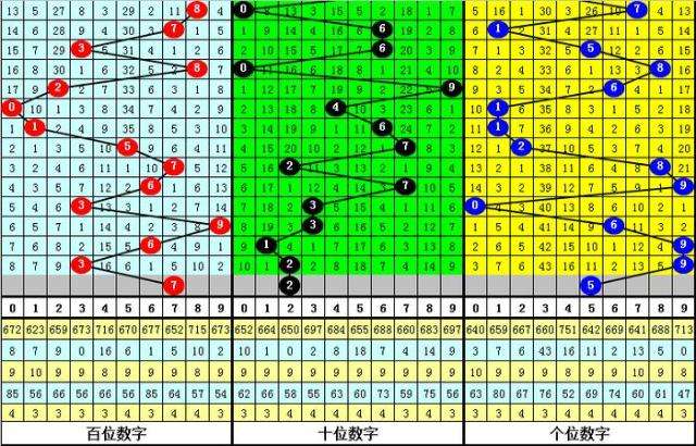 百位:近期大小号码出现次数基本相当,上期开出小号之后,本期适当关注该位大号出现;另外,该位0路和1路号码在最近20期奖号中走势较热,2路号码表现相对较冷,本期该位放弃2路号码,参考号码7。