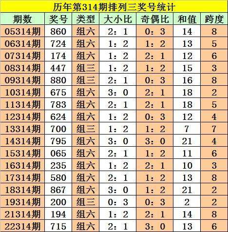 历年第314期排列三奖号:860 - 724 - 174 - 447 - 880 - 675 - 783 - 624 - 700 - 795 - 065 - 235 - 580 - 867 - 200 - 194 - 715。