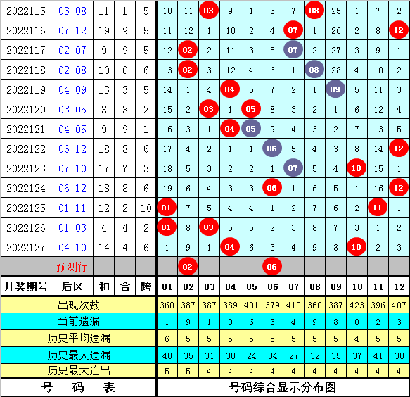 前区五区分析:上期第一、二区出号比例较高,第四、五区号码轮空。本期预计第四区号码大热,第一区号码轮空,关注五区比0:1:1:2:1。