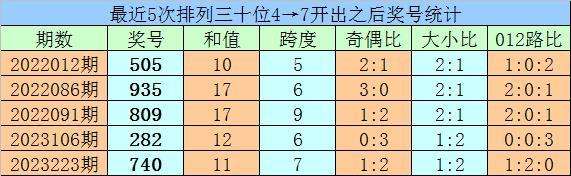 1、最近两期排列三十位号码开出号码分别为4和7,历史上十位号码连续两期同时出现号码4和7的奖号共开出62期。最近五次下期开出号码为:505、935、809、282、740;