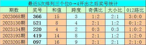 1、排列三前两期个位分别开出号码0和4,历史上个位号码连续两期分别出现0和4时,共有76次。在最近5次出现时,其下期分别出现号码:366、521、220、419、097;