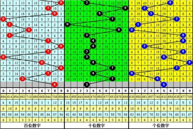 3、在以上0-9号码频次中,号码大小比为39:27,012路比为37:14:15,本期预计百位开出2路号码,参考号码8。
