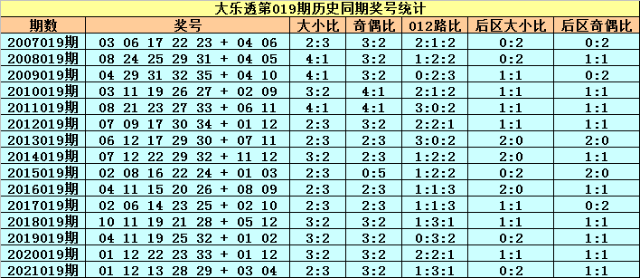 小王子大乐透第2022019期历史同期奖号属性分析: