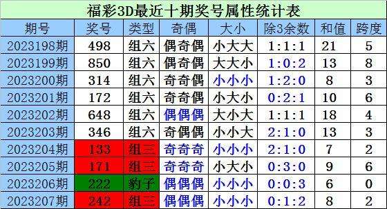 上期回顾:上期开奖奖号为242,类型:组三,偶偶偶,小小小,0:1:2,和值8,跨度2。