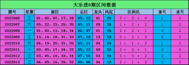 014期高飞大乐透预测奖号:龙头凤尾区间比