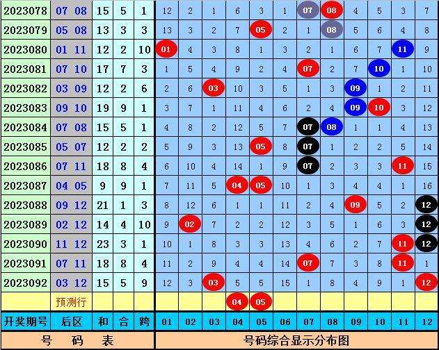 后区分析:上期后区开出号码03和12,最近10期后区奖号奇偶比为12:8,大小比为15:5,本期后区看好号码01、04、05、07、11,后区单挑两码04、05。
