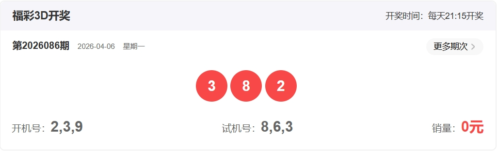 福彩3D第2026086期开奖382