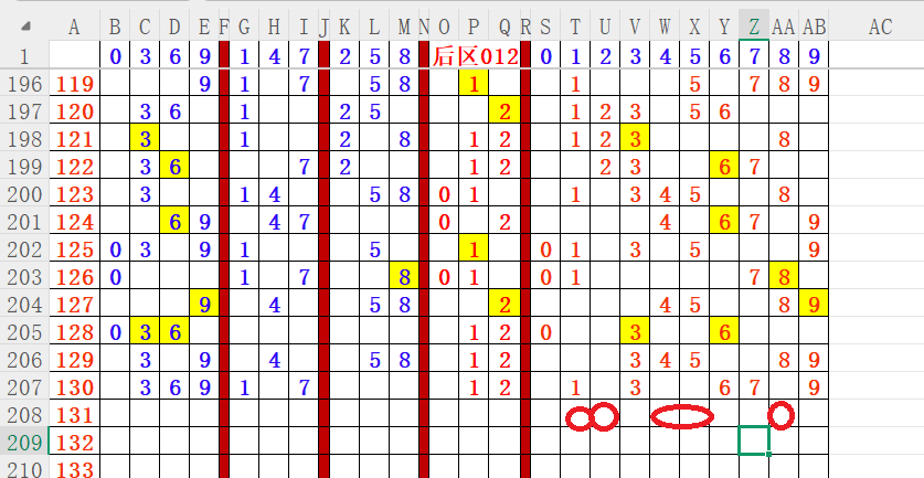 如上图4,012路分析012路,本期重点12路。重点 03 05 06 07 10