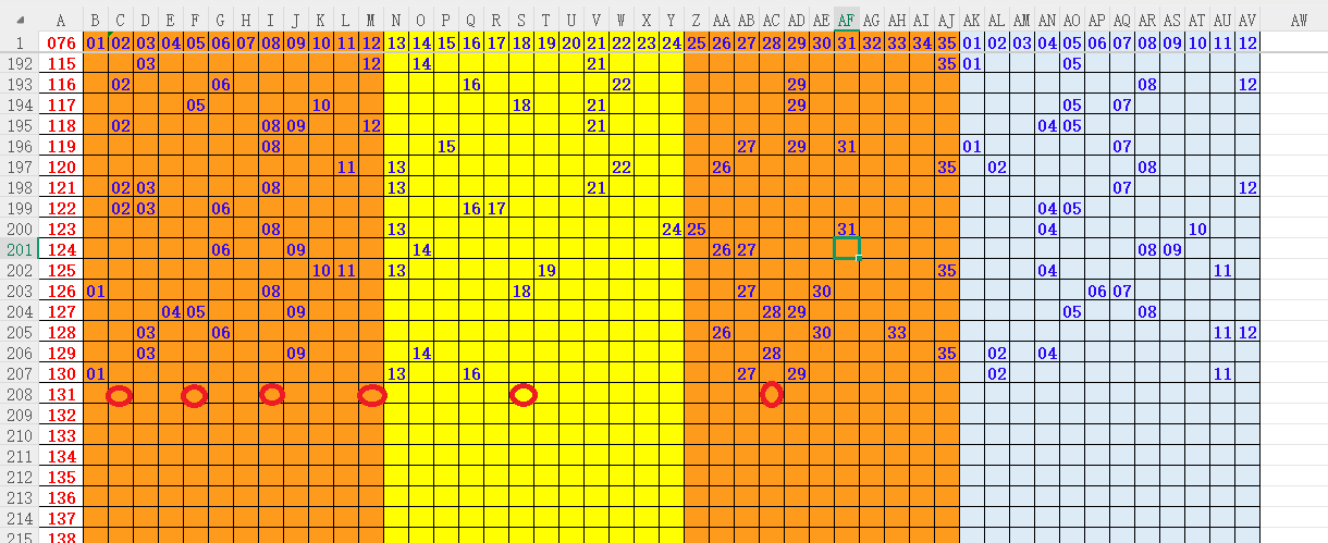综合以上条件分析: 03 13 23 06 16 09 28 19 01 11 21 04 14 24 08 18 28 30 31 最号最好。