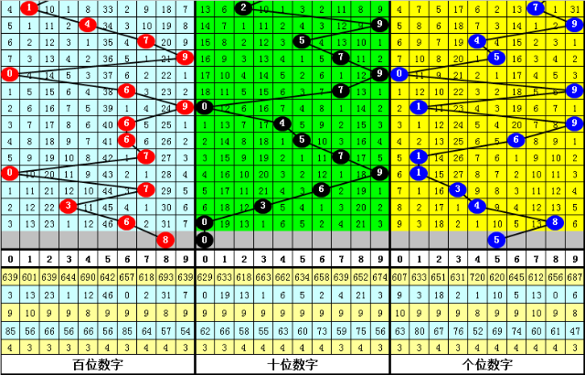 0路号码上期开出2个,近10期共出现19个表现相对活跃,其中0开出5个、3开出3个、6开出6个、9开出5个,本期应注意0路号码回补,参考号码0。