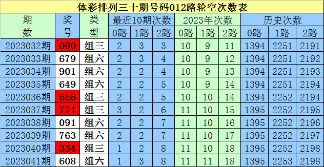 开奖回顾:排列三第2023041期奖号为:608,号码012路比为2:0:1。
