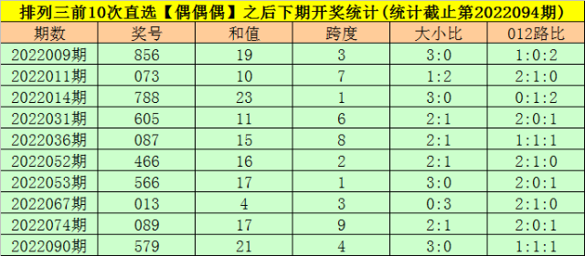 开奖回顾:排列三第2022094期开出奖号:488,类型为组三,和值为20,奇偶比为0:3,大小比为2:1,跨度为4。