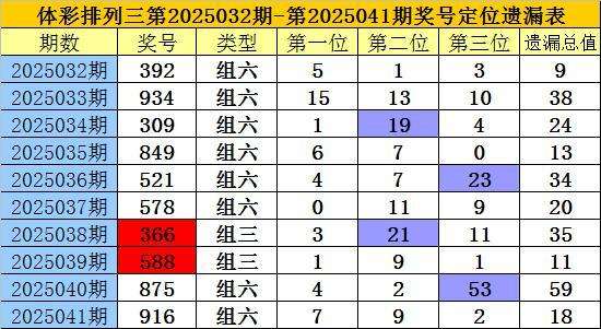 开奖回顾:排列三第2025041期奖号为:916,各位号码遗漏值分别为7、9、2,遗漏总值为18。
