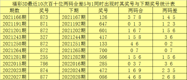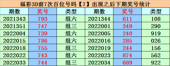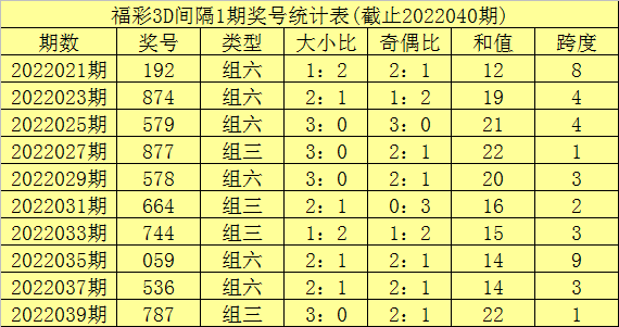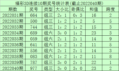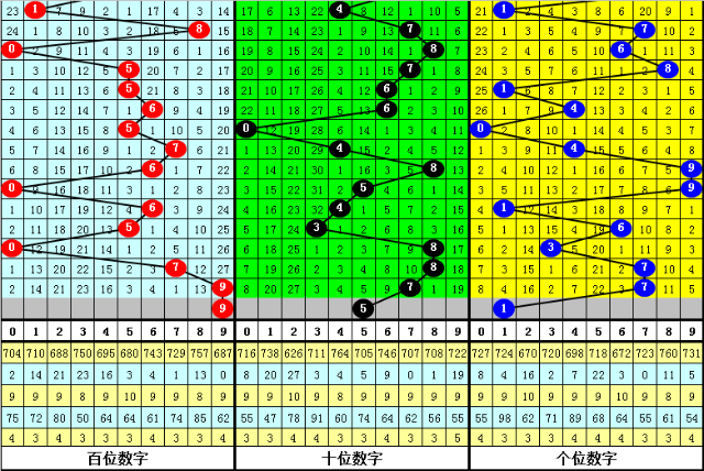 百位号码:第22036期-22040期奖号为:6-5-0-7-9,振幅为9点,分布较分散,本期注意百位开出重复号码。