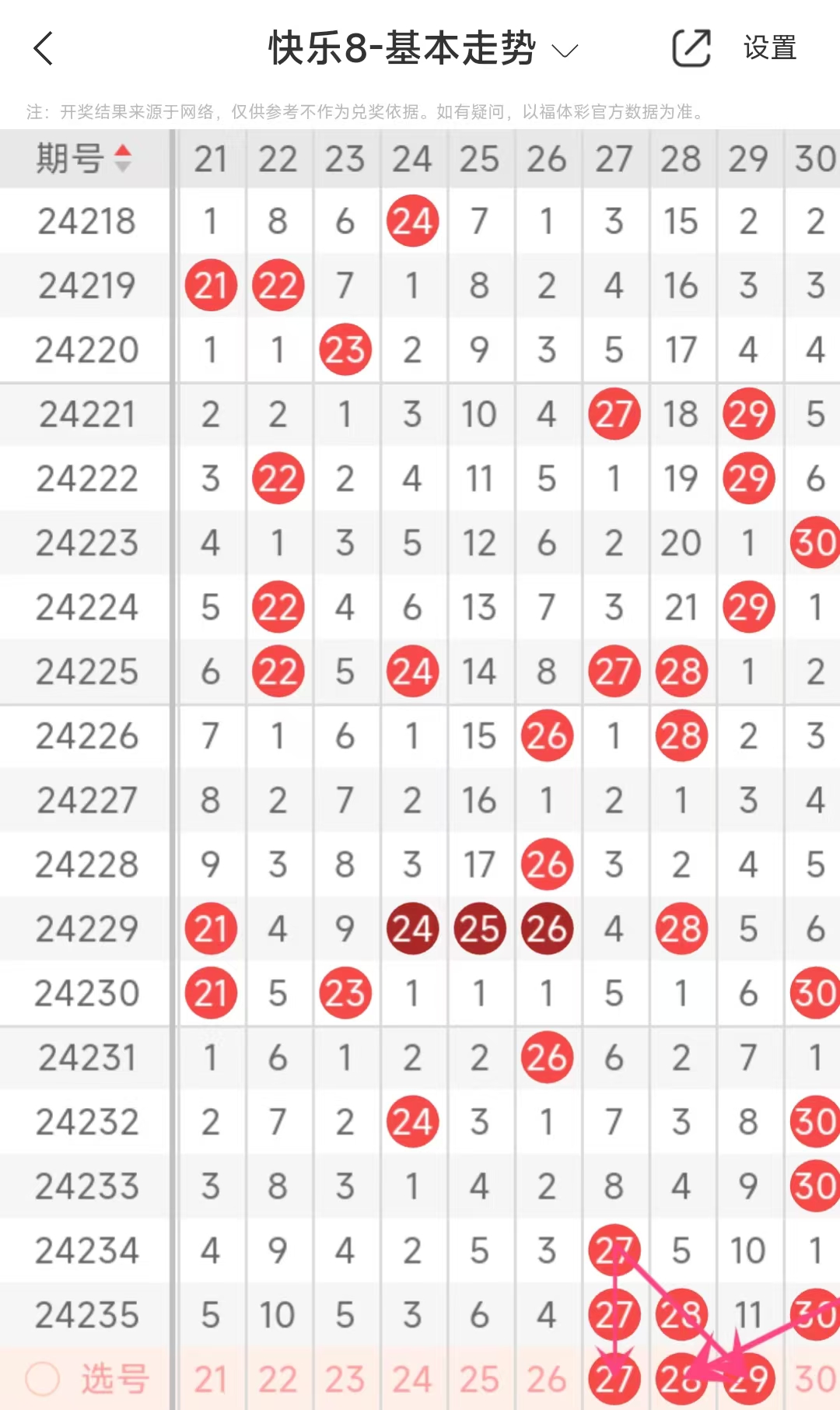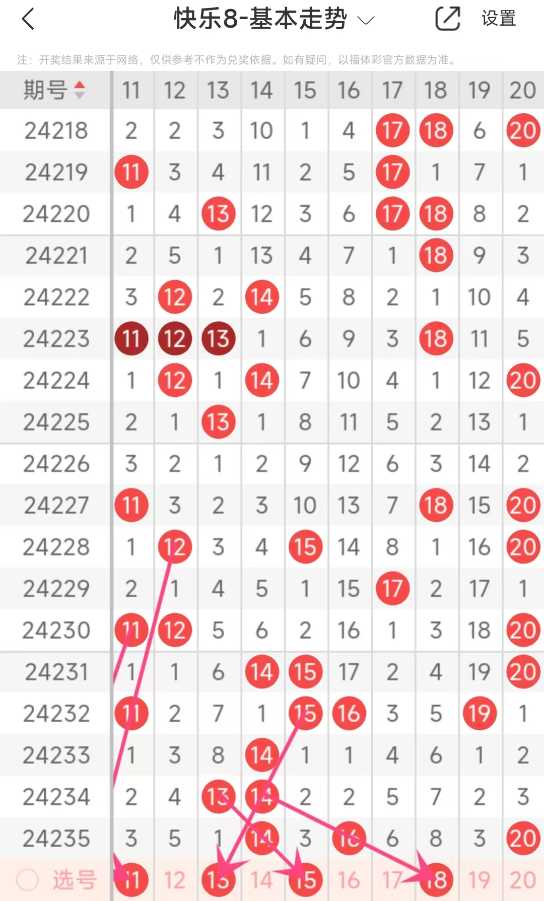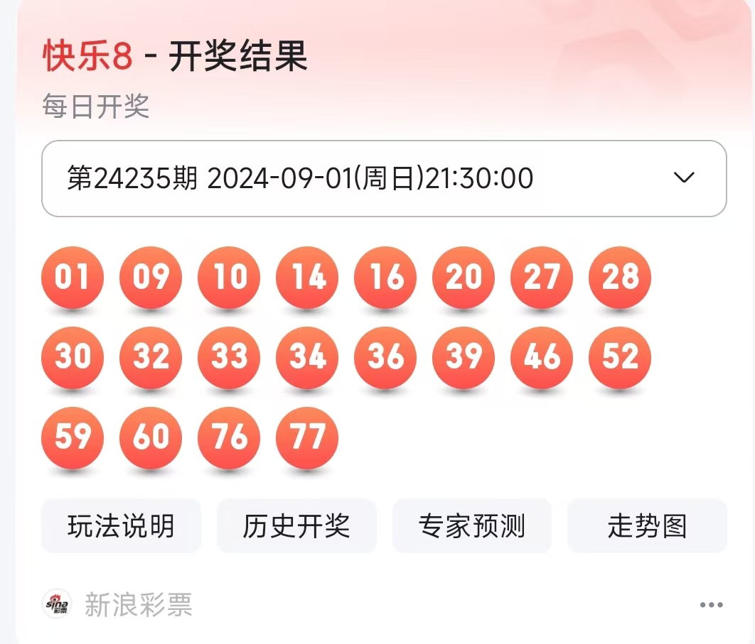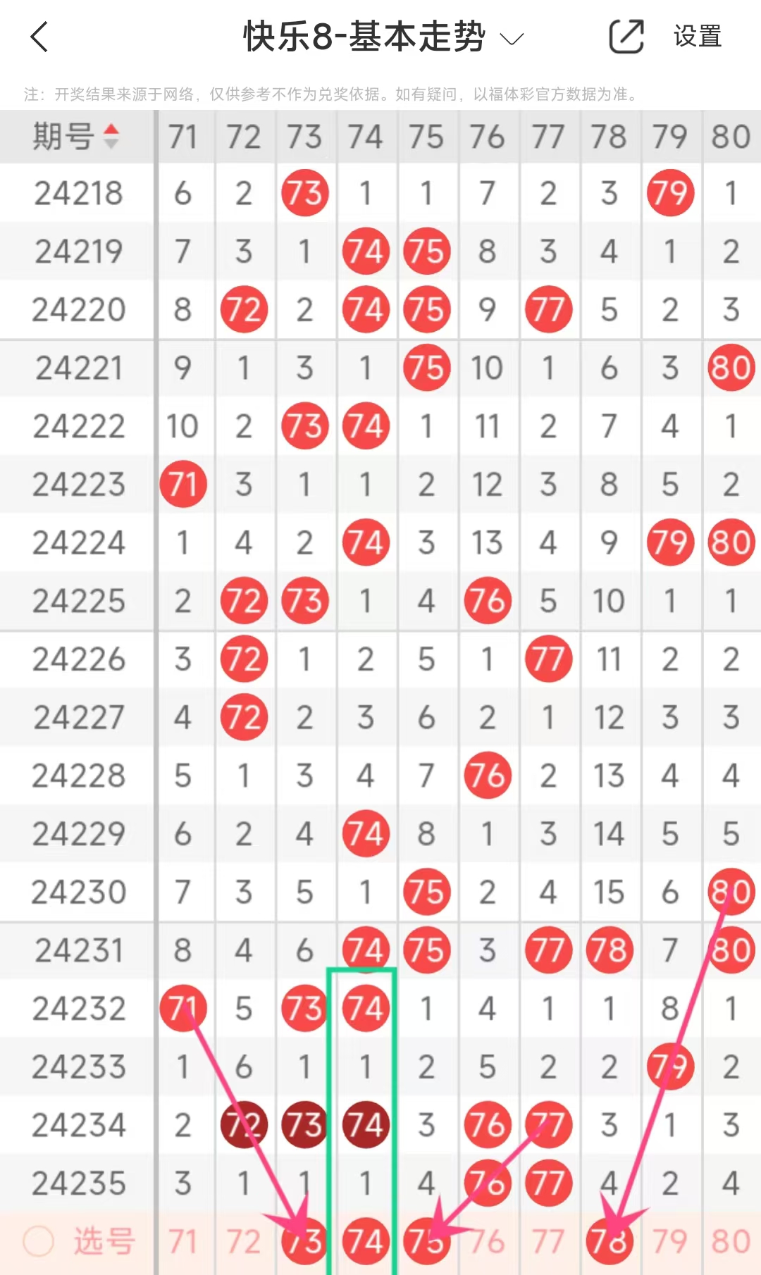 下面是我对2024236期福彩快乐8的分析和预判,希望通过我的分析能让大家今晚大红!福彩快乐8上期开奖号码如下图
