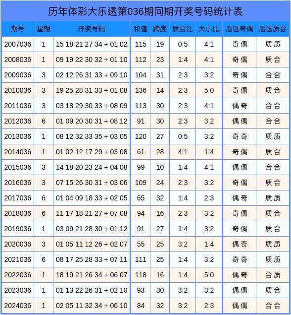 质合比分析:去年同期前区奖号的质合比为3:2,质数奖号较热,在历年同期奖号数据中质合比为31:59,合数号码略胜一筹,本期预计质合比为1:4,注意合数号码热出。