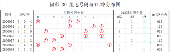 通过对走势的综合判断,现对福彩3D 2026080期分析如下: