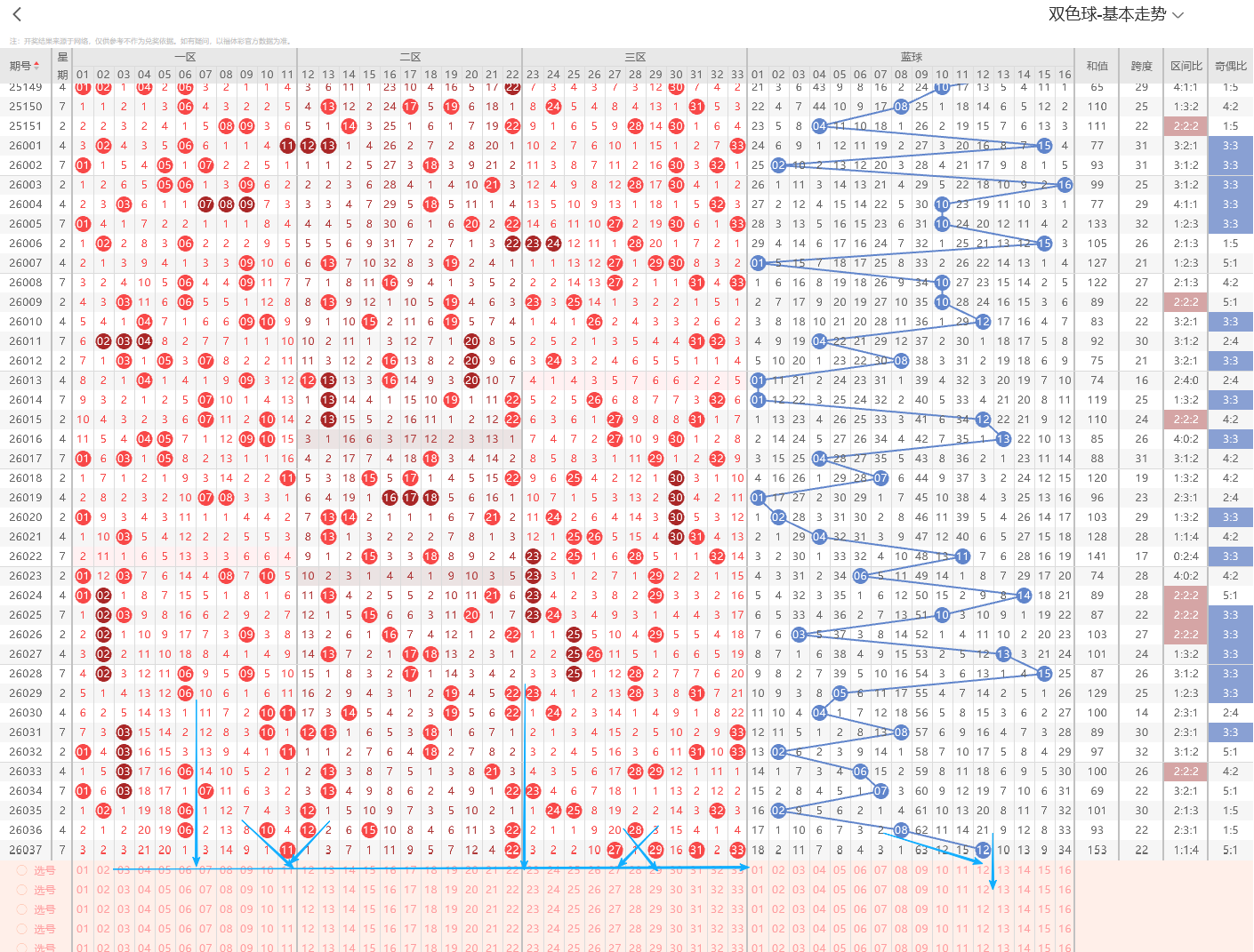 1、红球特征分析:(通过整体走势不难看出每期开奖号都具备以下明显的特征点)
