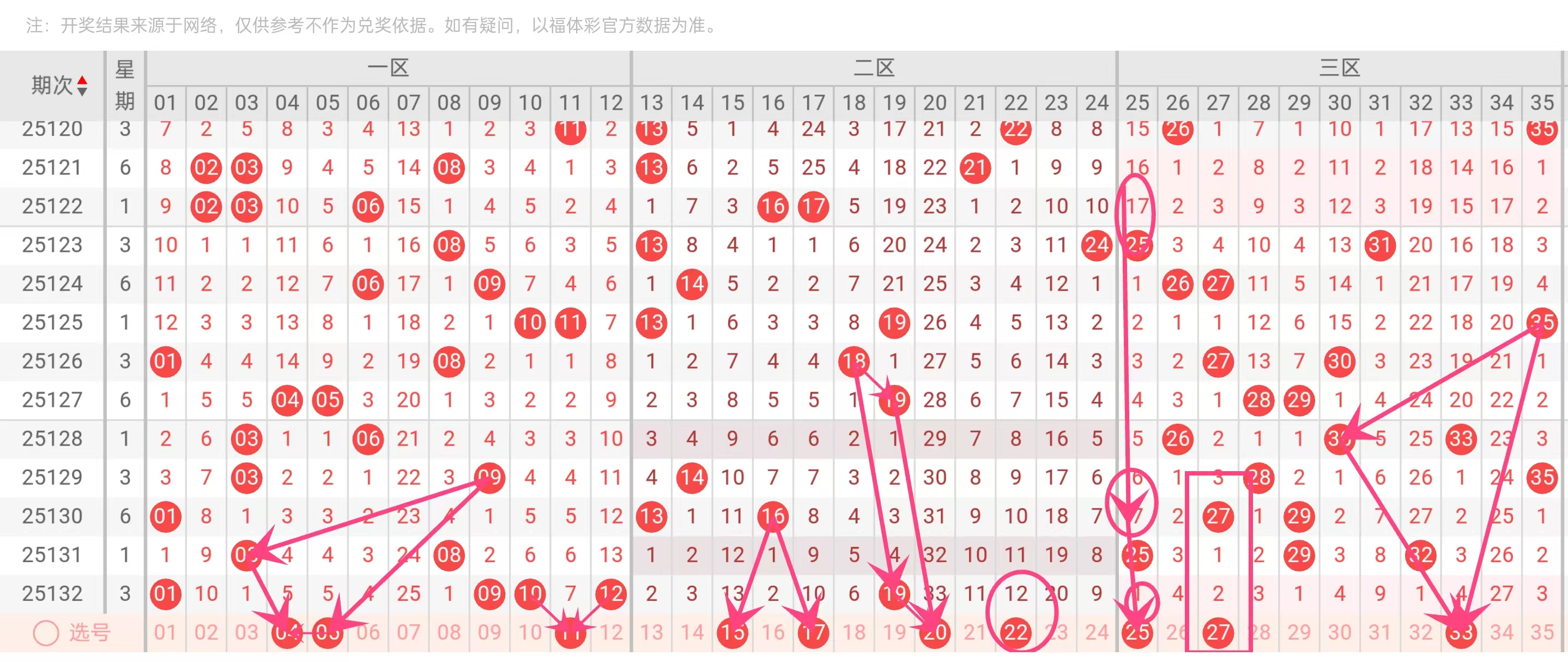 首先,回顾近5期开奖数据:2025128期前区03、06、26、30、33,后区11、12;2025129期前区03、09、14、28、35,后区02、04;2025130期前区01、13、16、27、29,后区02、11;2025131期前区03、08、25、29、32,后区09、12;2025132期前区01、09、10、12、19,后区06、07。从这些数据中,我们可以总结出以下规律和趋势: