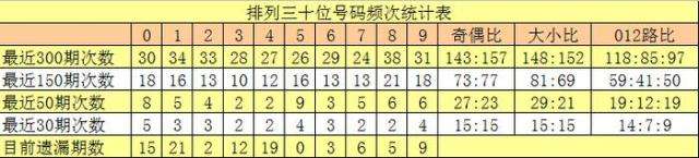 个位号码:前50期走势最活跃的号码为:5开出11个,9开出6个,1、2、7开出5个;走势最冷的号码为:3、8开出3个,0、4、6开出4个。个位号码大小比开出29:21,奇偶比开出30:20。本期个位排除两码:4、8,关注号码0、6、9,胆码参考0。