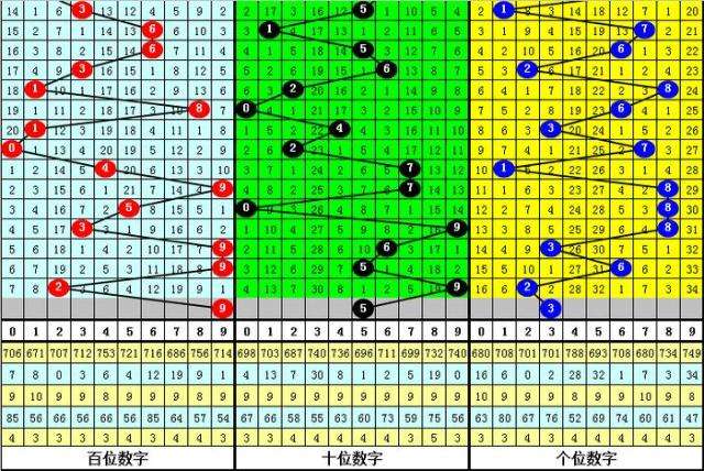 大中小分析:在组选0-9号码分布图中,前10期小 号(0-2区段)出现8枚奖号,中号(3-6区段)出现10枚奖号,大号(7-9区段)出现12枚奖号,上期中号区域没有落号,本期注意小 号走冷,防0-2区段断区。