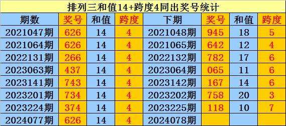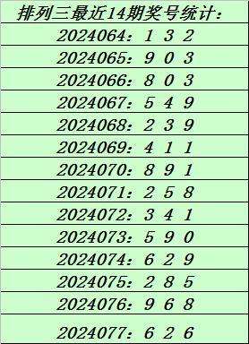 上期回顾:排列三第2024077期奖号:626。和值14,跨度4。