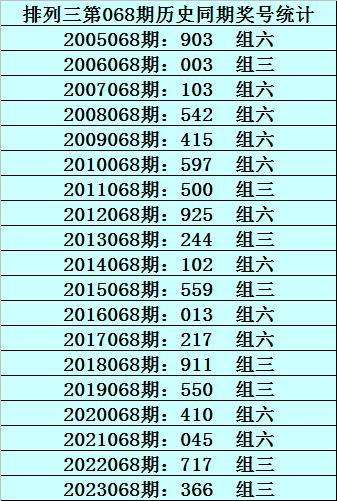 068期成毅排列三预测奖号:6码组六参考