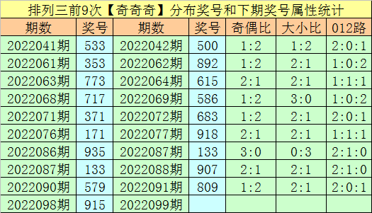 上期回顾:排列三第2022098期开出奖号915,类型为:奇奇奇、012路和大小大。