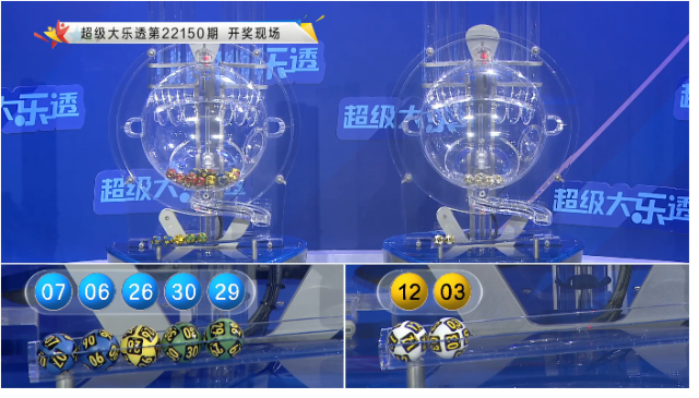 上期开奖:大乐透第22150期奖号:06 07 26 29 30 + 03 12。