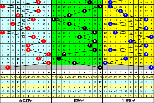 号码跨度:在第052期同期奖号中,跨度开出频次分别为:跨度4开出5期,跨度7开出3期,跨度2、3、8开出2期,跨度1、5、6、9开出1期,跨度0没有出现。去年同期开出2,今年同期预计跨度上升,注意跨度8。