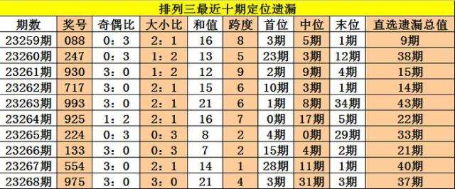 开奖回顾:排列三第2023268期奖号:975,定位直选遗漏值3期、31期、3期,遗漏总值为37期。