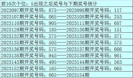 上期回顾:福利彩票3D第2023153期开奖结果:奖号为065,奖号和值为:11,奖号跨度为:6,奇偶形态为:偶偶奇,大小形态为:小大大。