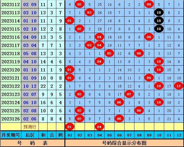 后区分析:上期后区开出2路+0路号02和06,最近30期后区奖号012路比为17:22:21,最近10期后区奖号012路比为5:9:6,本期后区注意号码01、02、04、06、09,单挑两码组合01、04。