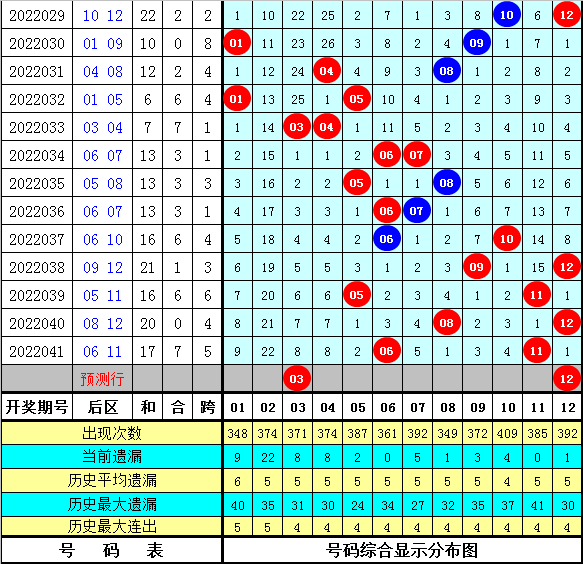 后区号码分析:后区上期开出奖号06和11,历史上前5次号码06与11同时出现之后,其下期分别开出奖号:08+09、04+06、05+06、04+11、02+07,本期后区注意号码03、05、08、11、12,精选两码03、12。