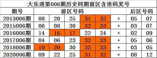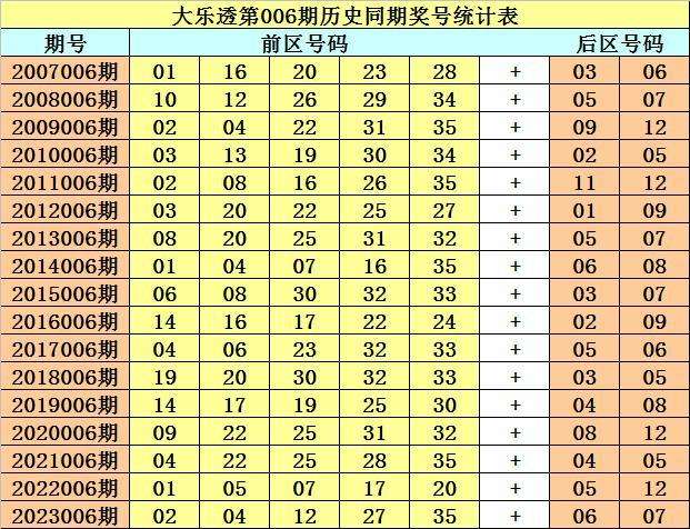 7。在历史同期奖号中,后区和值大小比为6:11,其中大号和值表现较冷,本期防大号和值回补。